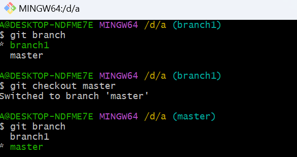 git branch2、切换到其他分支:选择一个不需要删除的分支,例如 "master" 分支运行以下命令来切换分支: