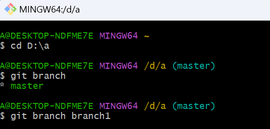 git branch <分支名>例如,要创建一个名为branch1的新分支,可以运行: