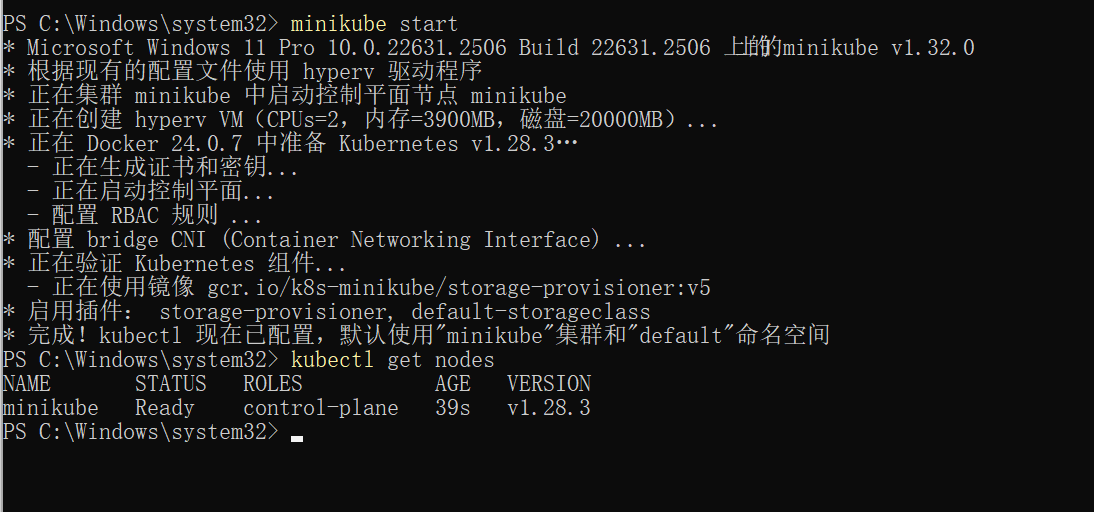 Enable-WindowsOptionalFeature -Online -FeatureName Microsoft-Hyper-V-Tools-All -All运行此命令并确保 Hyper-V PowerShell 模块已成功启用后,尝试重新运行 minikube start。