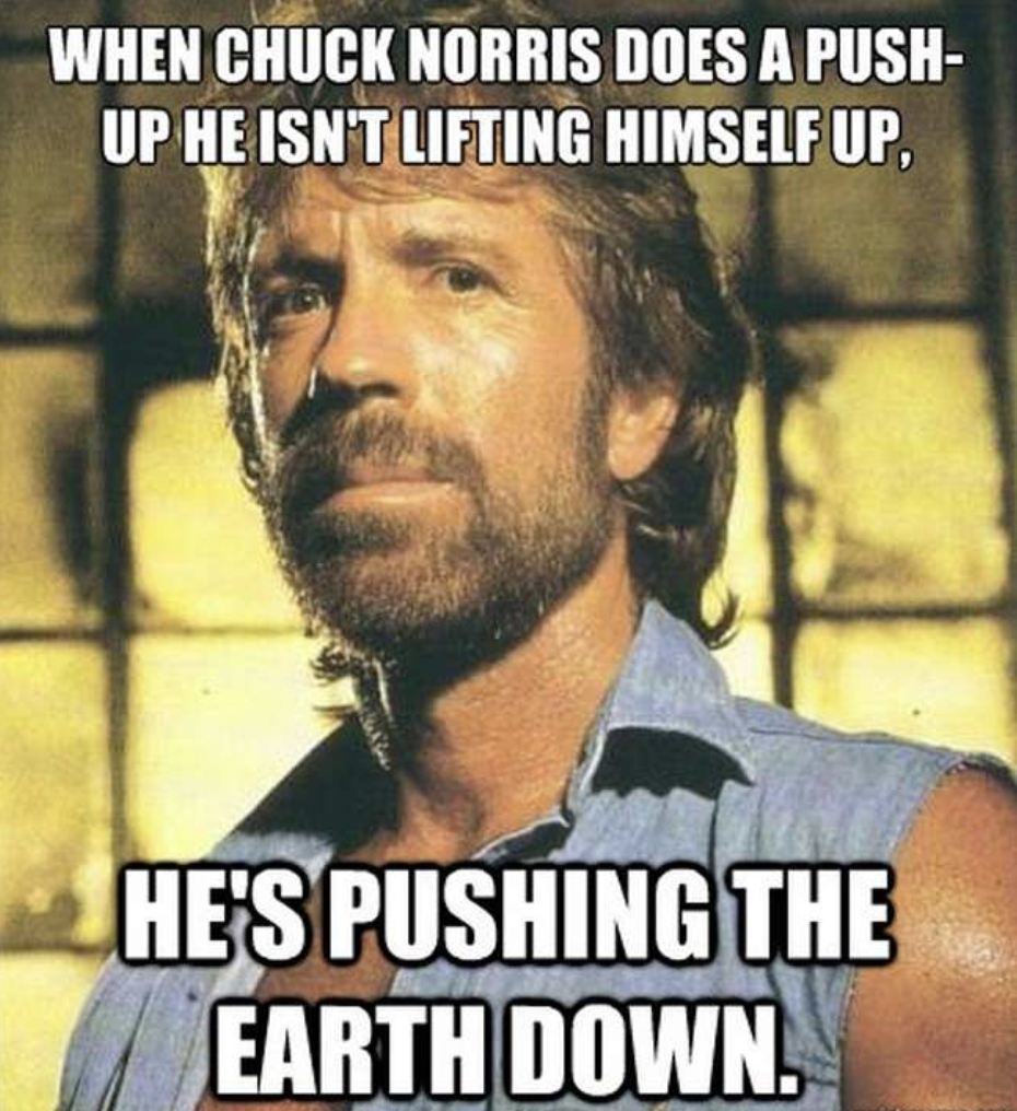 比如「Chuck Norris做俯卧撑,不是把自己撑起来,而是把地球压下去」。