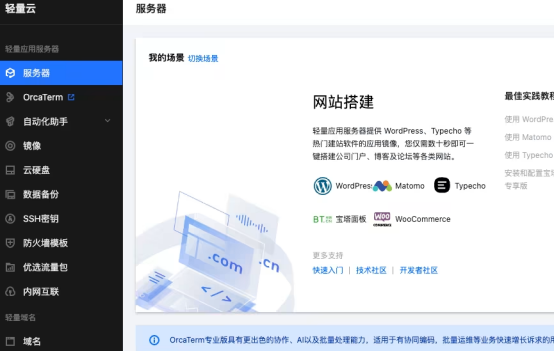 一、腾讯云轻量应用服务器一键创建应用步骤如下 1. 登录控制台 首先,您需要登录腾讯云控制台。 2. 进入轻量应用服务器购买页面 登录后,在控制台产品中选择“轻量应用服务器”,然后点击“新建”按钮。在新建页面,您可以看到多种应用镜像选择,包括WordPress、LAMP、Node.js等常见应用环境。 3. 选择应用镜像 在一键创建应用时,关键步骤是选择应用镜像。腾讯云提供了丰富的应用镜像,您只需选择您需要的应用,例如,如果您要搭建个人博客,可以选择WordPress镜像。选择镜像后,系统会自动为您配置好运行环境。 4. 选择实例配置 接下来,选择实例的配置,包括地域、可用区、实例套餐(CPU、内存、SSD、带宽等)和购买时长。对于一般网站应用,入门级配置(如2核4G)已经足够。选择完成后,设置服务器实例名称和密码(用于登录服务器)。 5. 一键部署 确认所有配置无误后,点击“立即购买”并完成支付。服务器创建成功后,您可以在控制台看到您的实例状态。通常,几分钟内您的应用就会自动部署完成。 6. 访问应用 部署完成后,您可以通过控制台获取服务器的公网IP地址,在浏览器中访问该IP地址即可看到您部署的应用。例如,如果您部署的是WordPress,那么访问IP地址将进入WordPress的安装配置界面。 二、常见问题与注意事项 权限设置:一键创建应用后,系统已经为您配置好必要的运行环境,但您可能需要根据应用需求进行一些权限设置。例如,WordPress可能需要您设置文件上传目录的权限。 应用管理:腾讯云轻量应用服务器提供了应用管理功能,您可以在控制台中对应用进行启动、停止、重启等操作,还可以查看应用日志。 安全组设置:为了保证安全,建议您配置安全组规则,只开放必要的端口(如80、443)。 总结: 使用腾讯云轻量应用服务器的一键创建应用功能,可以大大简化应用部署流程,节省时间和精力。