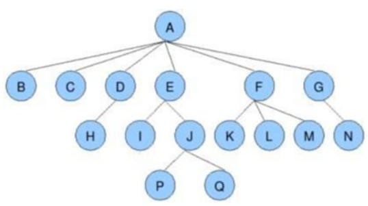 非终端结点或分支结点:度不为0的结点;如上图:D、E、F、G...等结点为分支结点