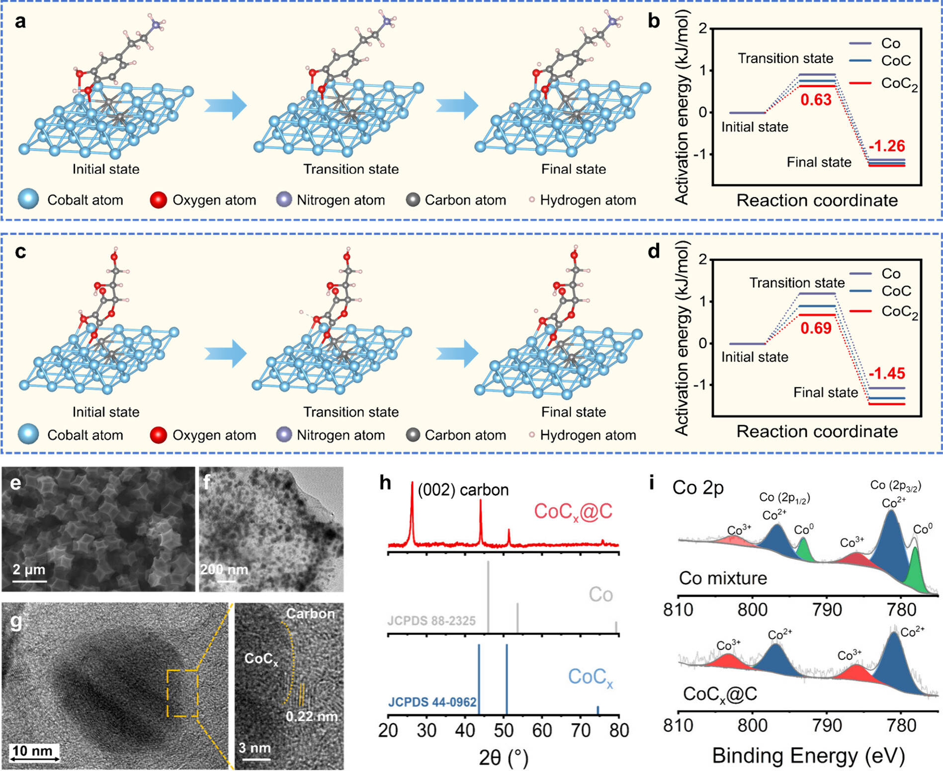 图3:DA在CoC₂@C表面的氧化机制研究