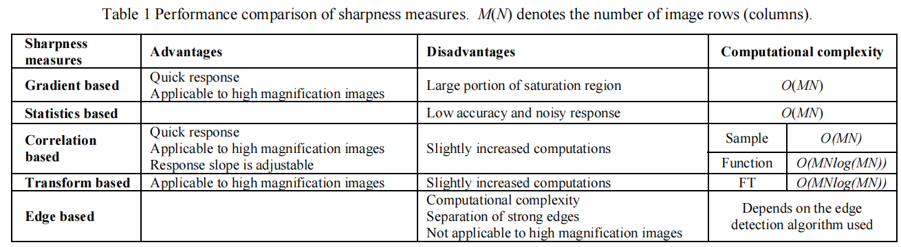 (4)变换域的度量方法的性能介于基于梯度和基于统计的度量方法之间,其计算量取决于变换的类型,而基于傅立叶变换和基于离散余弦变换的度量方法的计算量与基于相关函数的度量方法相当。
