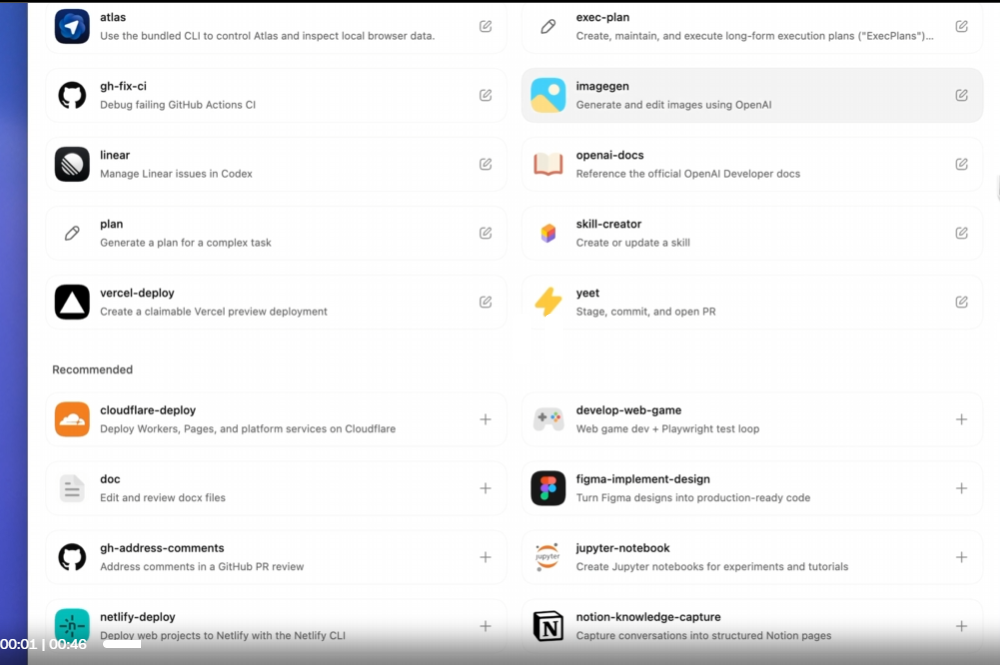 Codex App 内置了 Skills 系统,和 Claude Code 的 Skills、OpenClaw 的 Skills 本质上是同一个思路:把重复性工作打包成可复用的技能包。
