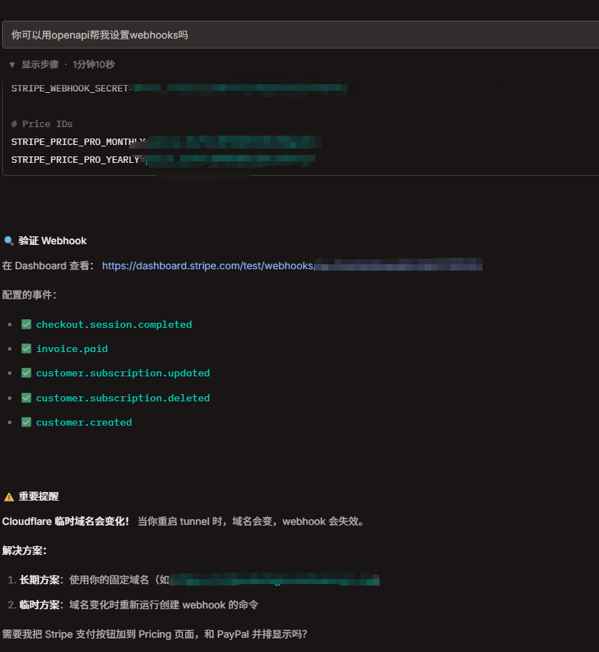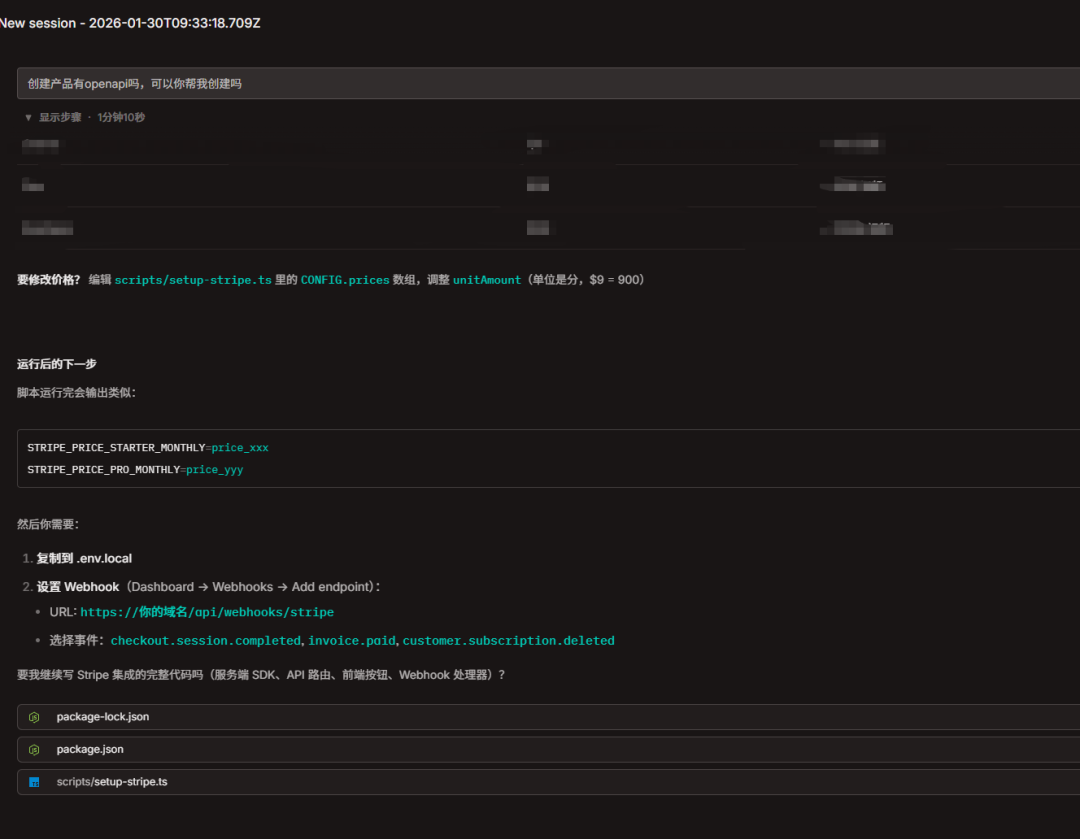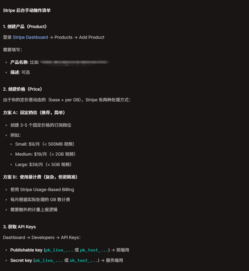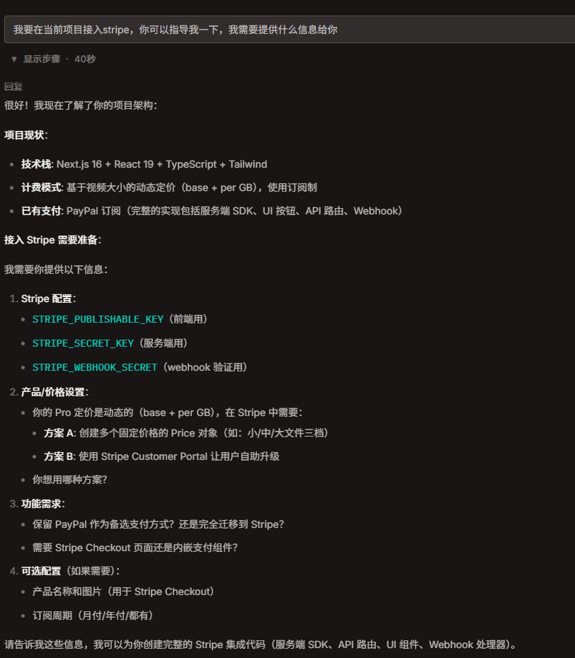 因为我是第一次接入 Stripe,也没有底,所以先让它给点建议: