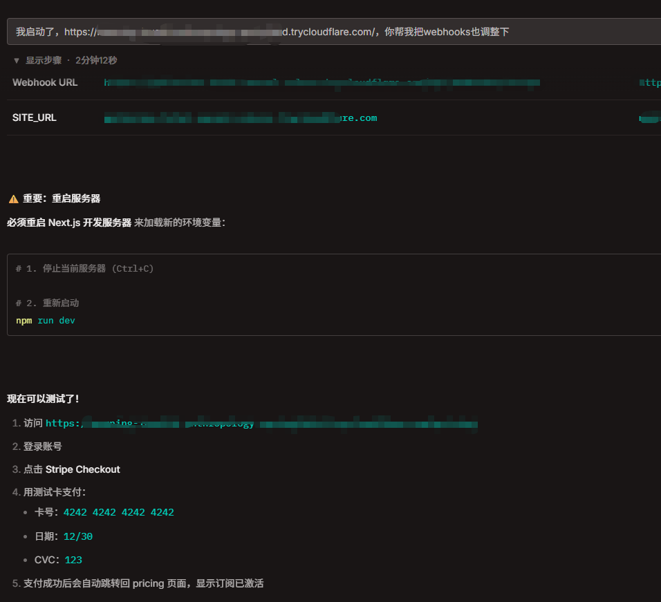 整个过程不到 2 小时,我就把 Stripe 接完了。