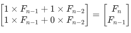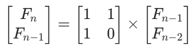 矩阵加速的关键是构造递推矩阵(也叫转移矩阵),将数列的线性递推关系转化为矩阵的幂次运算,即:转移矩阵其中 k 是递推式的初始项数,比如斐波那契数列的递推式是Fn=Fn−1+Fn−2,初始项是 F1=1、F2=1,k=2。