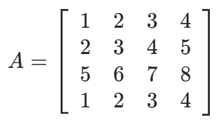 行数等于列数的矩阵称为方阵,比如 4×4、3×3 矩阵都是方阵。方阵中从左上角到右下角的元素构成主对角线,后续的三角矩阵、对角矩阵都是基于方阵的主对角线定义的。例:4 阶方阵(4×4)