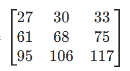 若 A 是 n×s 矩阵,B 是 s×m 矩阵,那么 A×B 的结果是一个n×m 矩阵(n 行 m 列),记为 C=AB。