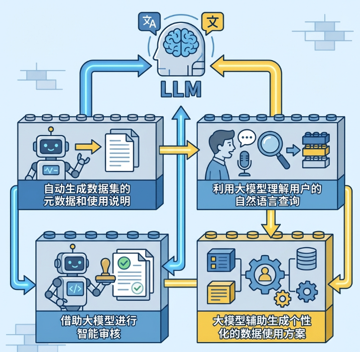 随着大模型的发展,未来也可以进一步利用大模型的自然语言理解和生成能力,实现更智能的数据流通机制:通过大模型自动生成数据集的元数据和使用说明,降低数据提供方的编目成本;利用大模型理解用户的自然语言查询,将其转化为精确的数据检索请求,提高数据发现的准确性和便捷性;借助大模型进行智能审核,自动评估数据使用申请的合法性和合理性,加速审核流程;同时,大模型还可以辅助生成个性化的数据使用方案,根据用户的具体需求推荐合适的数据子集和处理方式,进一步提升数据使用的效率和价值。