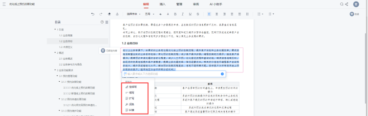 Visual RM的AI智能优化能力体现在文本处理和质量校验两大维度。在文本处理上,支持需求内容的续写、缩写、扩写,并能根据受众调整表述风格——给业务部门看用通俗业务语言,给技术部门看自动转化为专业技术表述,让需求表达更贴合沟通场景。在质量校验上,AI自带“纠错雷达”,可实时标红错别字、语义不通内容,自动补全不符合模板规范的章节,比如漏写的“异常场景处理”“验收标准”等。更重要的是,AI能基于行业经验和同类需求案例,智能识别逻辑漏洞,主动建议补充缺失规则。例如发现需求未提及“改期后用户取消订单的处理逻辑”,会自动提示增加“改期后取消订单需扣除1次改期机会”的规则,提前规避研发隐患。