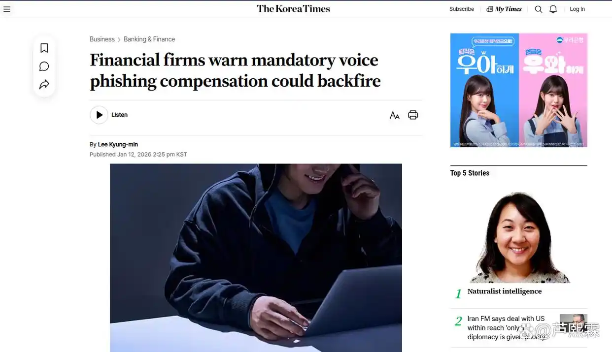 近年来,语音钓鱼(Vishing)已成为全球金融安全领域最为严峻的挑战之一。与传统网络钓鱼不同,语音钓鱼利用实时语音交互的心理压迫感、权威伪装及紧迫感,直接突破受害者的心理防线,诱导其进行转账或泄露敏感信息。据韩国金融监督院(FSS)数据显示,2025年韩国语音钓鱼诈骗案件数量同比激增34%,损失金额创下历史新高。面对这一态势,韩国政府计划推行一项激进的监管改革:强制要求银行对遭受语音钓鱼诈骗的客户承担主要甚至全额赔偿责任。该政策的初衷在于通过经济杠杆迫使金融机构加大在人工智能(AI)反欺诈监测、实时交易阻断及用户教育方面的投入,从而构建更坚固的金融安全防线。