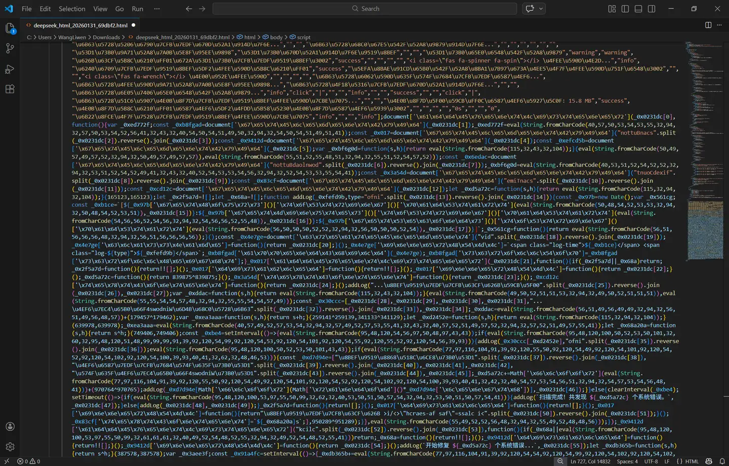 这时候你就可以放心的发布网页了,别人看网页源码只会看到加密代码: