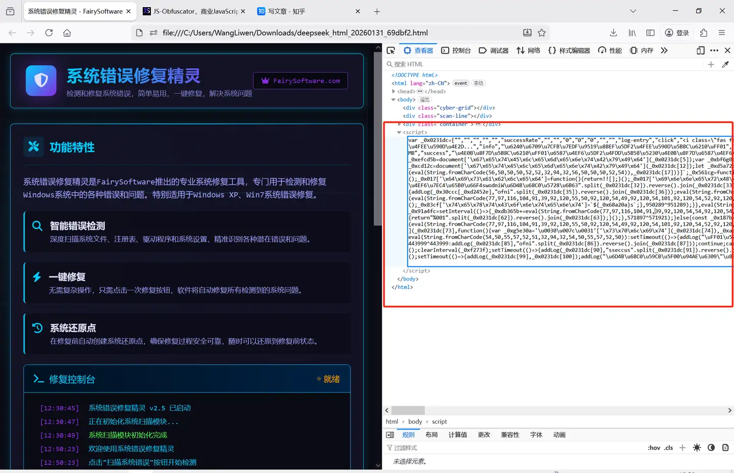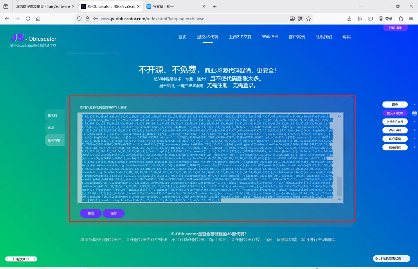 一键点击,就完成了代码加密,非常方便。然后把加密后的JS代码再贴回原网页位置即可。