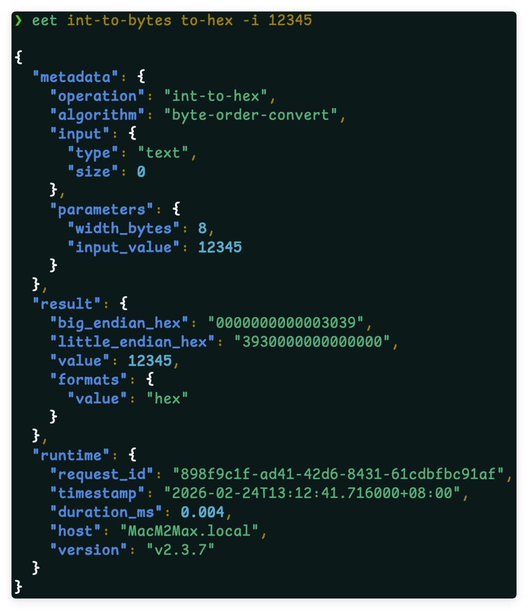 eet int-to-bytes to-hex -i 12345