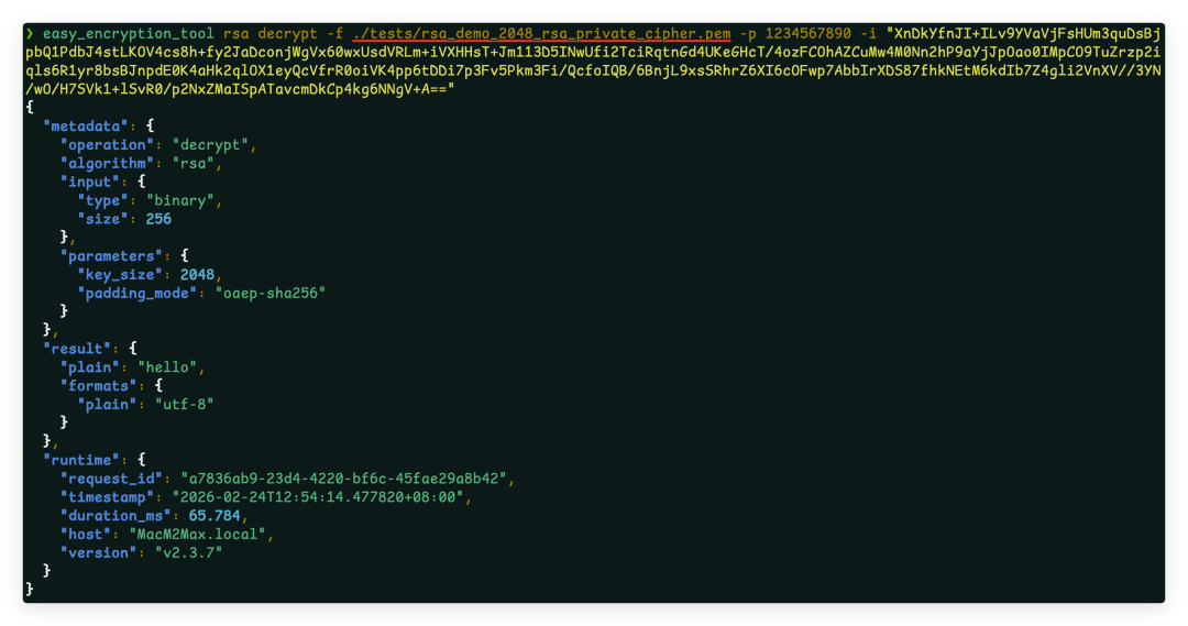 eet rsa decrypt -e pem -f my_rsa_private.pem -i "<ciphertext>" -p "strong_password"