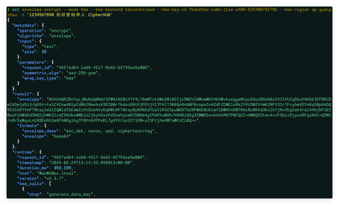 eet envelope encrypt --mode kms --kms-backend tencentcloud \