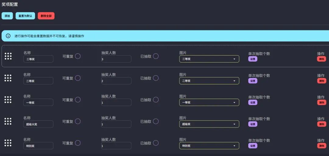 奖品图片和现场音乐,都可以上传后自行设置,方便得很,万一老板喝爽了,还能添加临时抽奖,就怕酒醒之后肉痛啊。