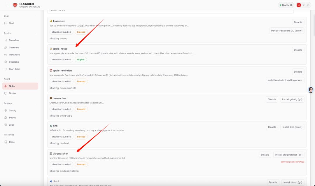 你可以网页界面手动的安装你需要的 Skills。