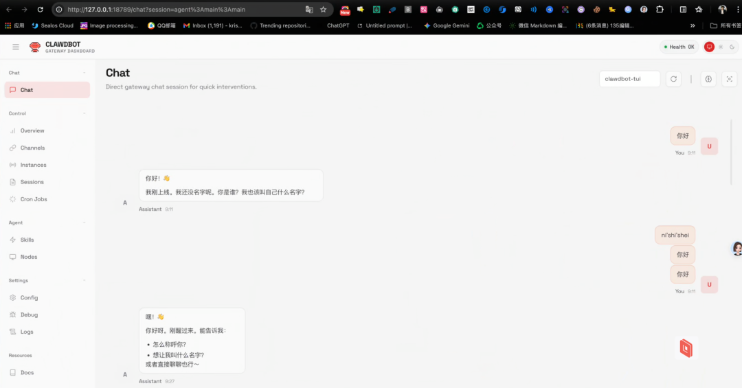 此外,Clawdbot 目前也支持在飞书中进行交互: