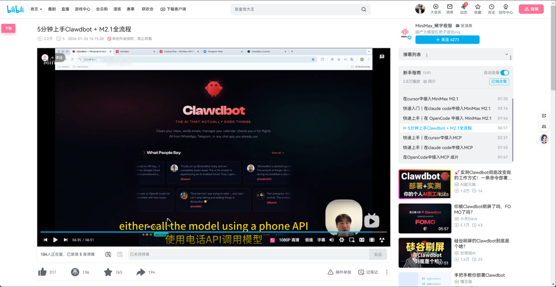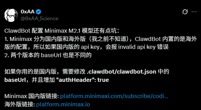 ClawdBot 这种 Agent,你要它一直醒着、一直干活、不中途摆烂,那模型要稳一些。 MiniMax 在这点上挺合适: