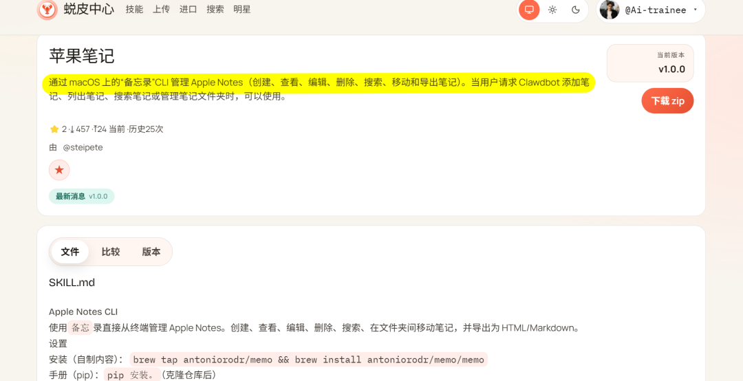 他自己还有一个官方网站,汇聚了很多 skills:https://clawdhub.com/skills