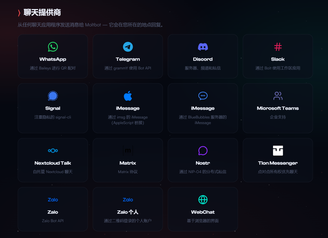 当然 Clawdbot 这个玩意也并没有什么很多新东西。实际上,如果前面一两年的东西,我估计会兴奋很多。