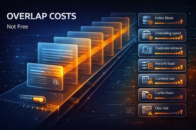 RAG 分块重叠提升了召回率但增加了隐藏成本,比如说索引膨胀、Embedding 开销、延迟、重排序负载和评估漂移。