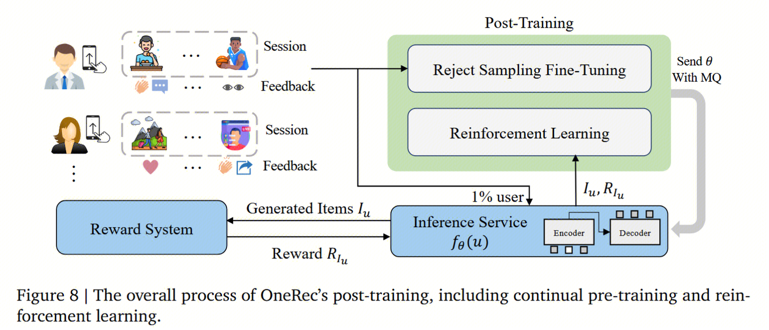 post-training: 拒绝采样微调RSFT(仅训播放时间长的top50%样本)+RL对齐(采样1%的RSFT样本)