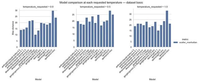 每个模型在不同温度水平上的响应分散图