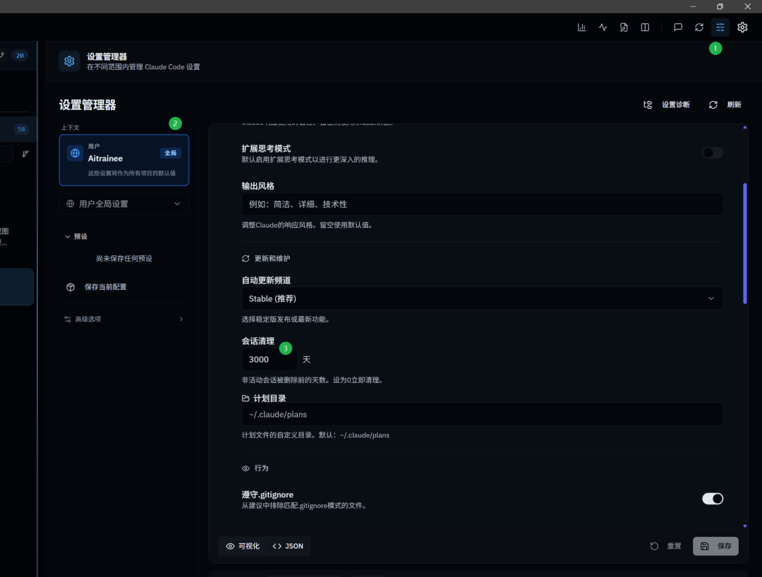 Claude Code 默认的会话记录清理周期好像是三十天,但你可以在这里将会话保存时间延长。