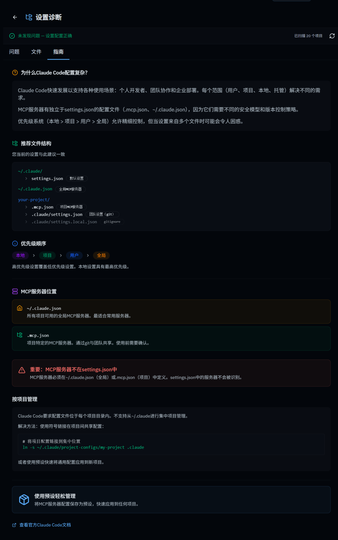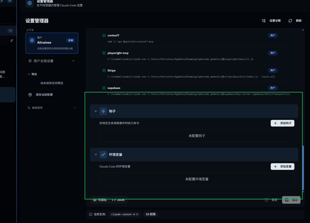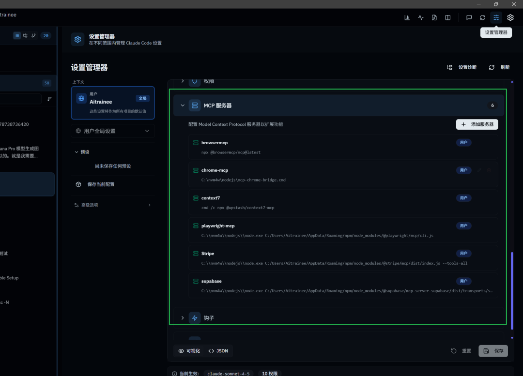 我在这里也看到了自己曾用用户级命令行方式为 Claude Code 安装并启用的 MCP。