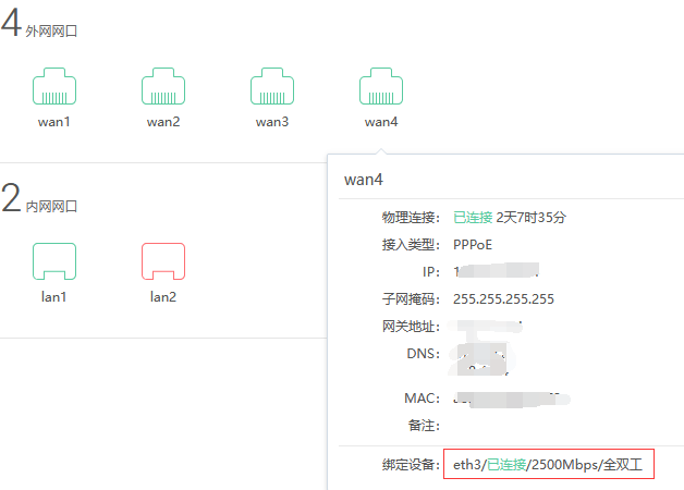正确的配置方式是:路由器必须配备多个2.5G网口,且每个光猫单独通过2.5G网口与路由器连接。2.5G网口的理论传输速率约312.5MB/s,完全能承载单条2000M宽带的满速传输,多条宽带通过独立2.5G网口接入,可避免单接口多线接入的拥堵问题。例如3条2000M宽带,就需路由器至少配备3个2.5G WAN口,分别对应3台光猫的2.5G LAN口。