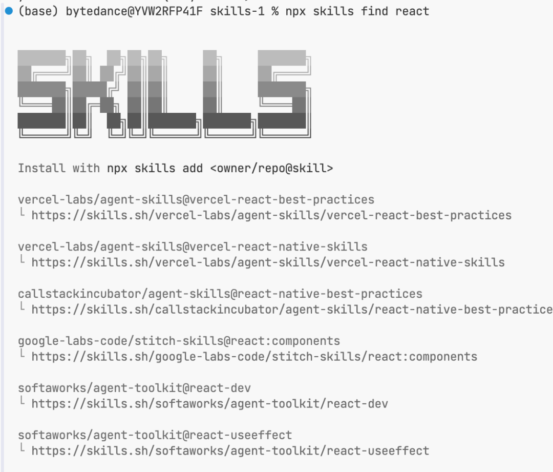 npx skills add vercel-labs/skills@find-skills使用效果: