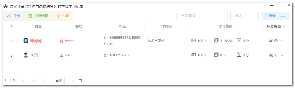 系统后台可实时、清晰展示每位学员的课程学习进度、章节完成情况、练习通过率、考试成绩等核心数据,支持按课程、学员、学员组、学习卡等多种维度进行数据筛选与批量导出学习报表,为教学评估、学情分析、教学计划优化提供精准、全面的数据支持。