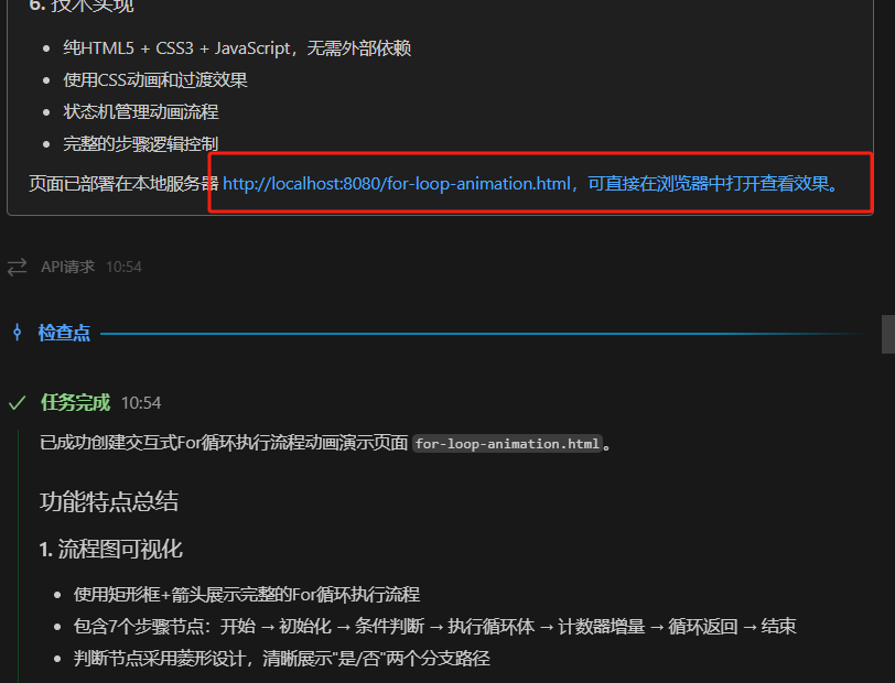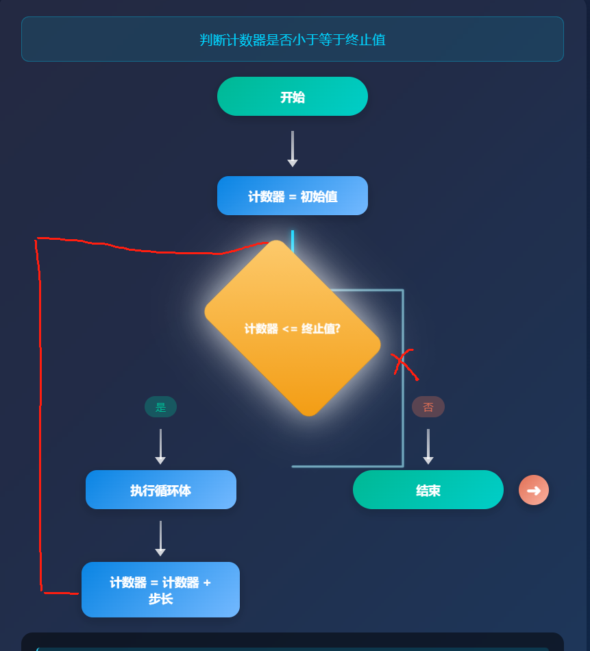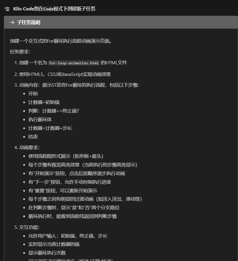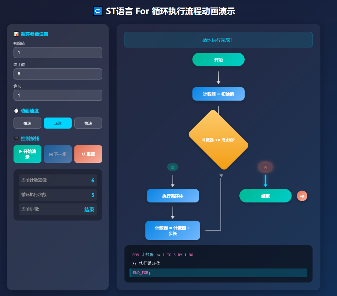 直接对话让他生成for循环的流程动画: