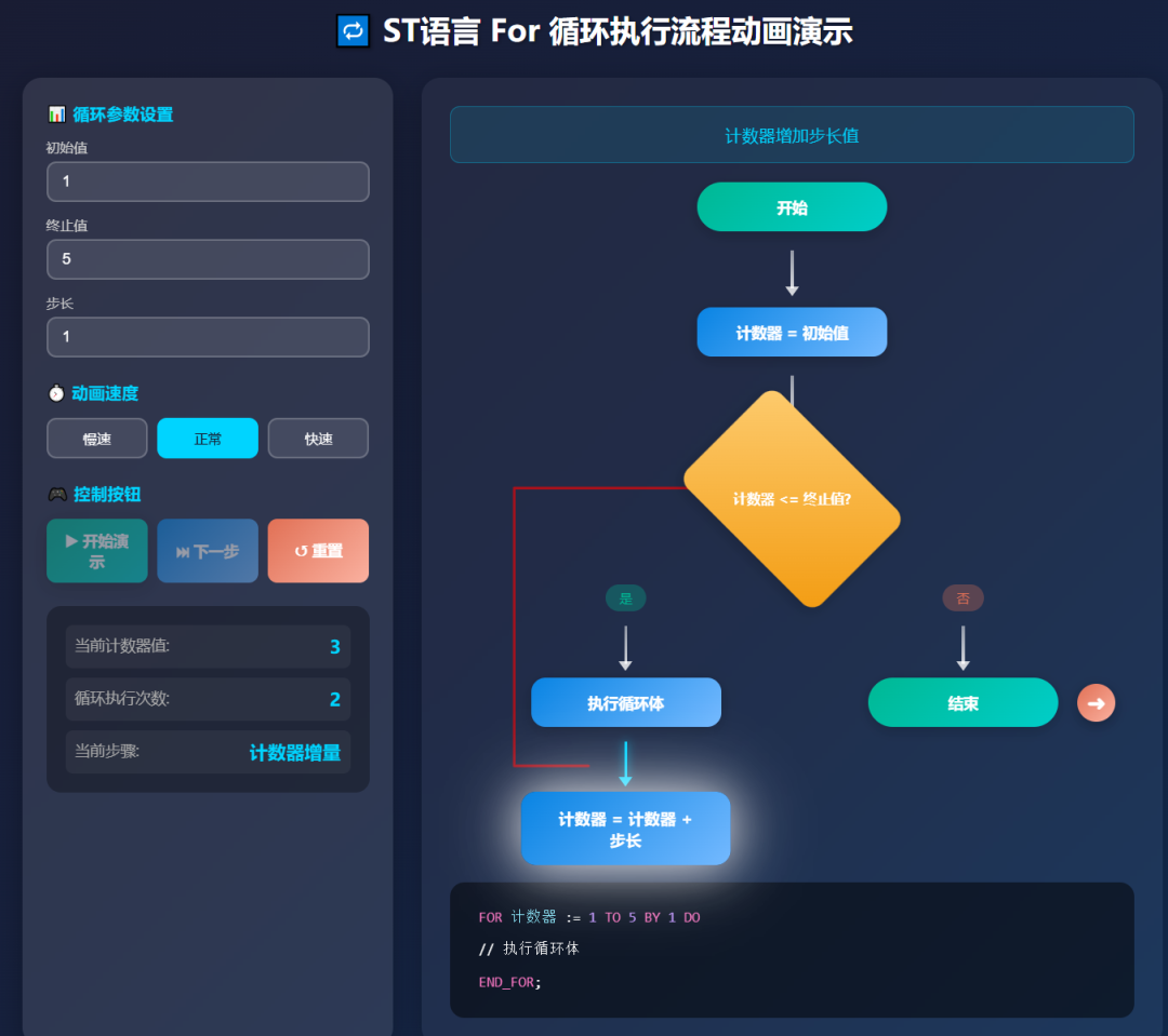 这段时间都在完善ST实战教程里面的内容,在介绍FOR循环的过程时,我在想是否可以动画来展示整个过程呢?