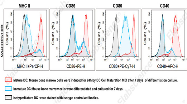 树突状细胞(DC)是一组不同类型的造血细胞,在先天免疫系统和后天免疫系统之间起着通道的作用。它们起源于淋巴-骨髓造血作用,来源于骨髓。它们是功能最强大的抗原递呈细胞,DC细胞是唯一能够显著刺激初始T细胞(NAIVE T细胞)增殖的APC,其他APC(B细胞和单核巨噬细胞等)仅能刺激已活化的或记忆性的T细胞。DC是机体T细胞适应性免疫应答的始动者,在肿瘤免疫中也发挥着重要的作用。本试剂盒提供一套完整的小鼠骨髓来源树突状细胞(BMDC)的分化培养和鉴定方案,涵盖小鼠骨髓细胞DC分化培养试剂、DC促成熟试剂,为小鼠骨髓来源树突状细胞(BMDC)的分化培养和鉴定提供稳定可靠的支持,提高了小鼠骨髓来源树突状细胞(BMDC)的培养和鉴定的效率及稳定性。