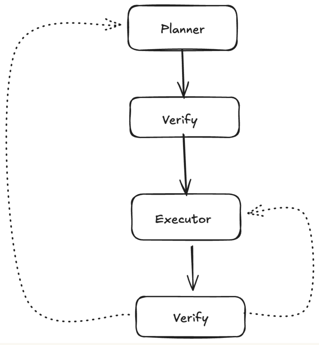 Planner generates plan -> Verifier checks: