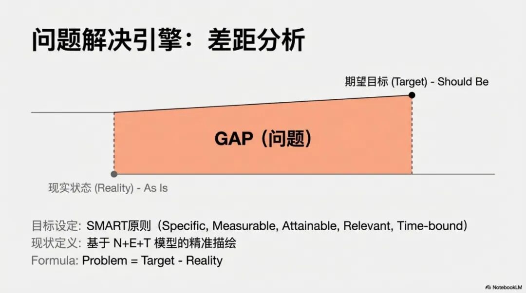 一切问题的本质,都是“期望目标” (Should Be) 与 “现实状态” (As Is) 之间的 **差距 (Gap)**。