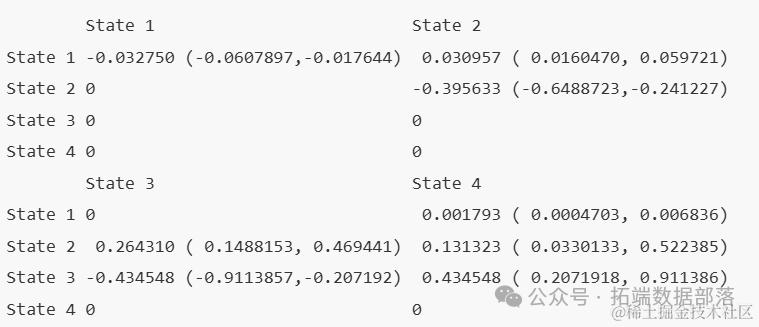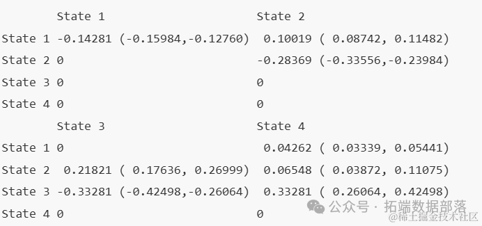 model_1 还会产生危害比的估计值,这些估计值显示了每个状态转移强度的估计影响。