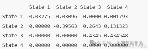 首先,我们为强度矩阵Q设置初始猜测值,该矩阵决定了连续时间马尔可夫链中状态之间的转移率。