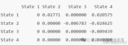 接着,我们关注dage对从状态3转移到状态4的强度矩阵的贡献,这在上面的表格中给出为-0.009439。取这个值的指数,得到了我们在上面打印model_1时得到的危害比表中dage从状态3到状态4的转移危害比。