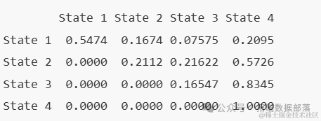deathexact = TRUE 表示最终吸收状态是精确观测到的。这是生存数据的定义假设。这相当于为状态4(我们的吸收状态)设置obstupe = 3。