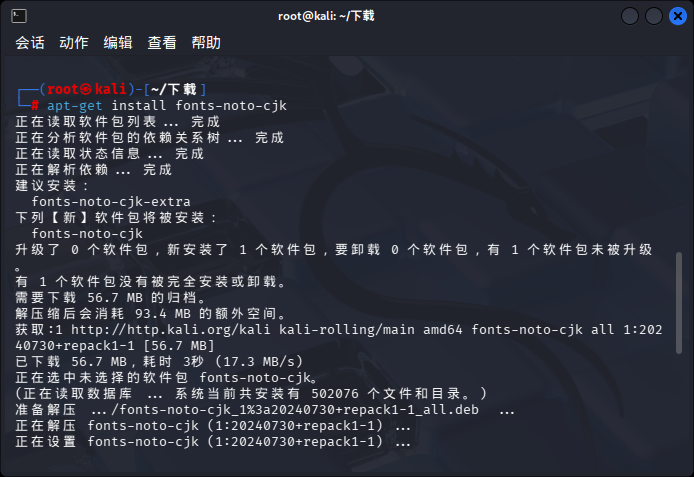 可以看到,报错了。报错的原因是缺少 fonts-noto-cjkoogle-noto-cjk-fonts两个字体包。 执行下面命令安装依赖包