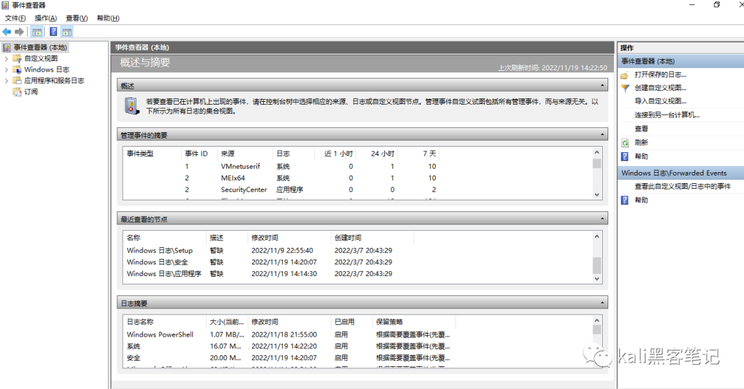 在windows系统中,主要的日志分为以下三类:系统日志(SysEvent)、应用程序日志(AppEvent)、安全日志(SecEvent)。我们可以通过win+r + eventvwr.msc 打开事件查看器。查看相应的事件信息。