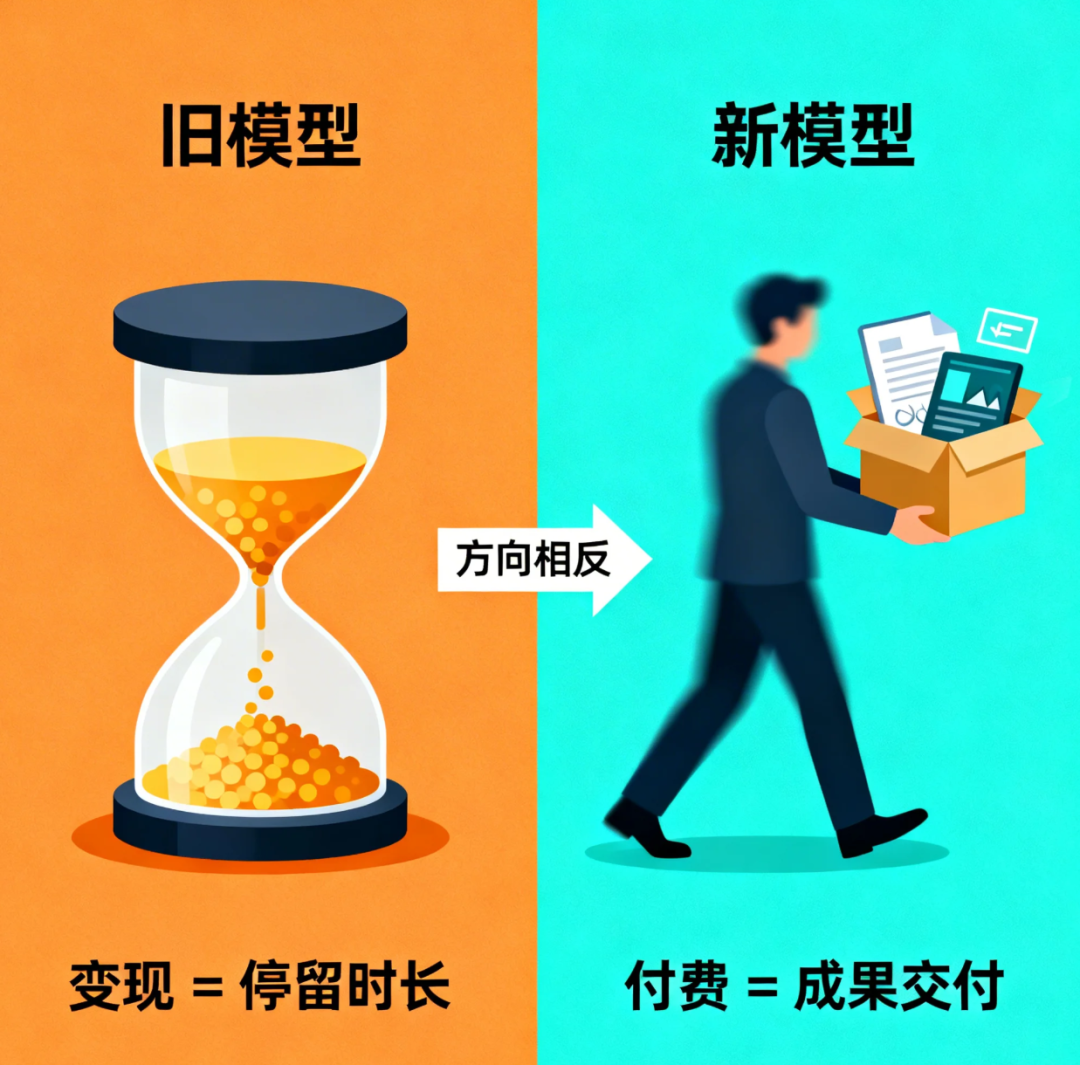 当付费换来的是成果, 而不是内容, 商业关系从博弈变成了合作。