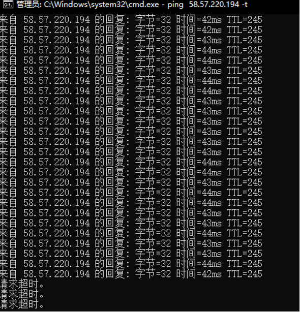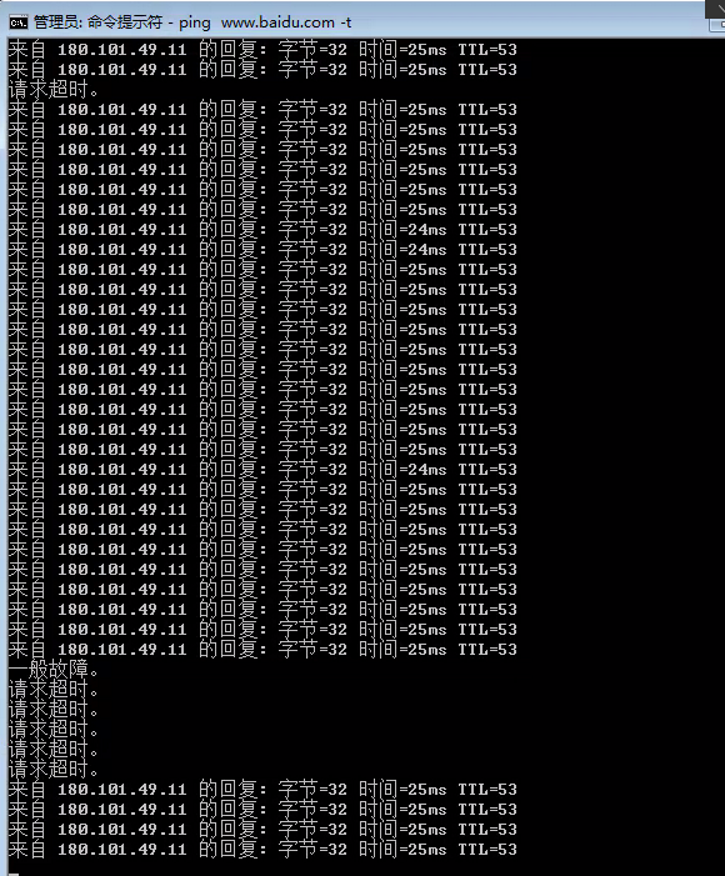 测试下来还是有丢包的情况,这个时候就有了对比了,单独接猫都会丢包的情况下,可以排除掉路由器的问题,是运营商线路出现了故障,最终报修维护。