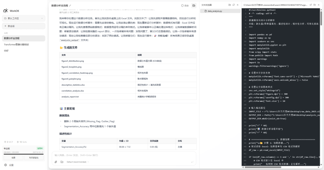 "打开我桌面上的 'rawdata2025.xlsx' ,先清洗缺失值和异常值,用 Python(Pandas+Seaborn)做描述性统计和相关性分析,生成多子图可视化报告,最后输出统计学解读和可投稿的 Figure 格式。"